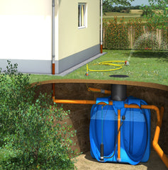 Het gezuiverde regenwater wordt opgeslagen in een ondergrondse of bovengrondse watertank – vaak gemaakt van kunststof (PE) of beton. De inhoud varieert van enkele honderden liters tot tienduizenden liters, afhankelijk van de toepassing. -