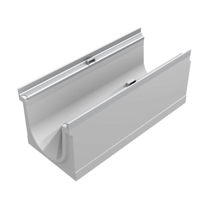 Typ M gemäß NEN EN 1433. Hochwertiger Faserbeton C35/45. Mit 4 mm starkem Kantenschutz aus verzinktem Stahl. Innenbreite 150 mm. Außenmaße LxBxH=500x208/213x210mm. Kiwa-Zertifikat gemäß BRL 5070. Mit CE-Kennzeichnung versehen. Gewicht 26kg.