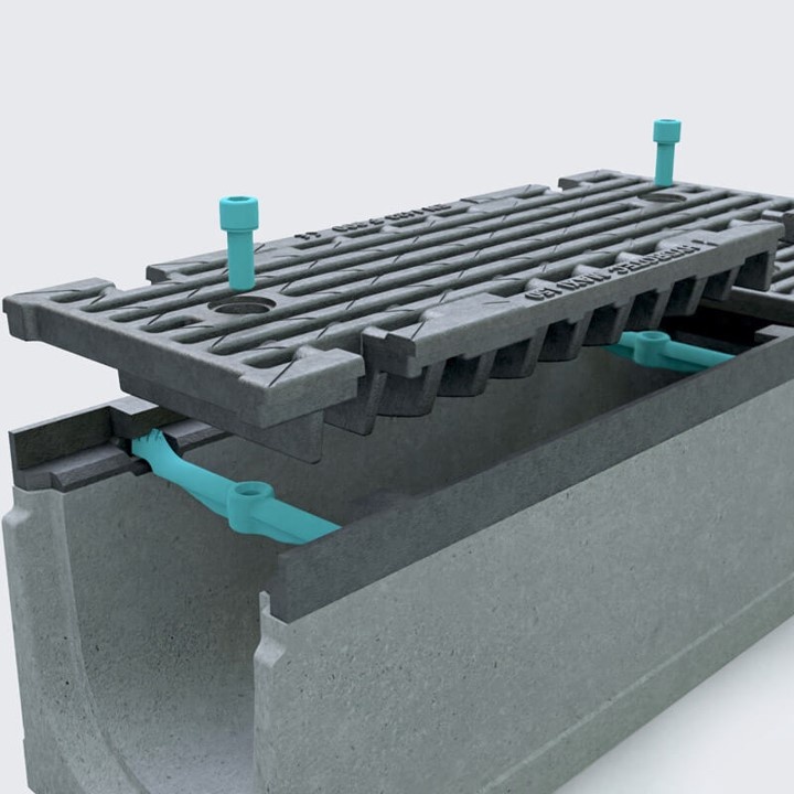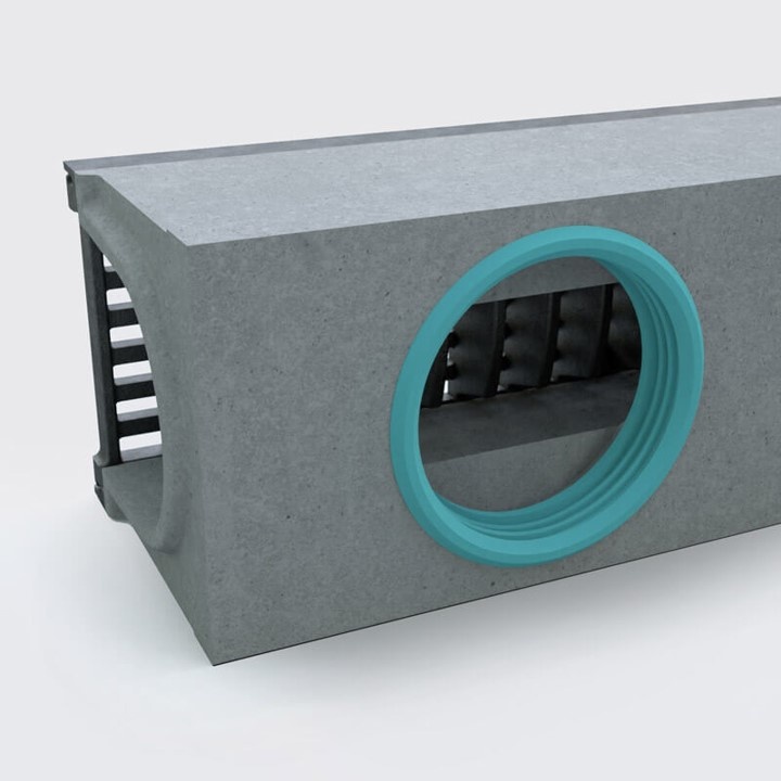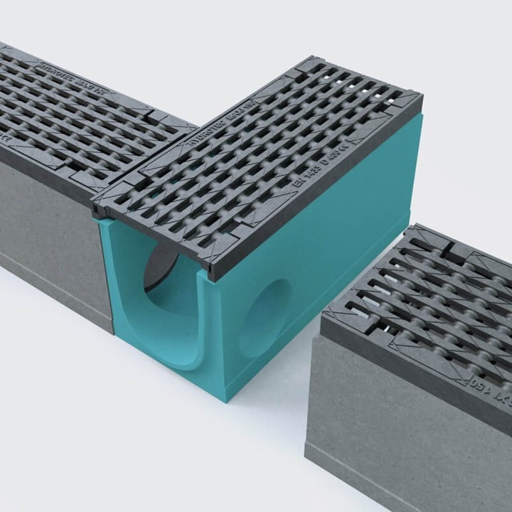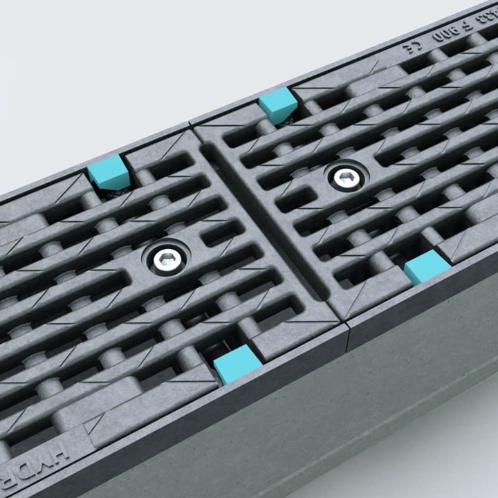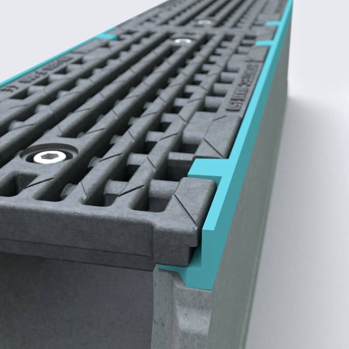 The drainage channel for the highest demands on traffic safety with two special screw locks per cover grid. Ideal for industrial estates, airports, race tracks and ports. The channel can withstand maximum forces and loads up to class F 900 and offers resistance and sufficient fire resistance due to the concrete quality C35/45.
