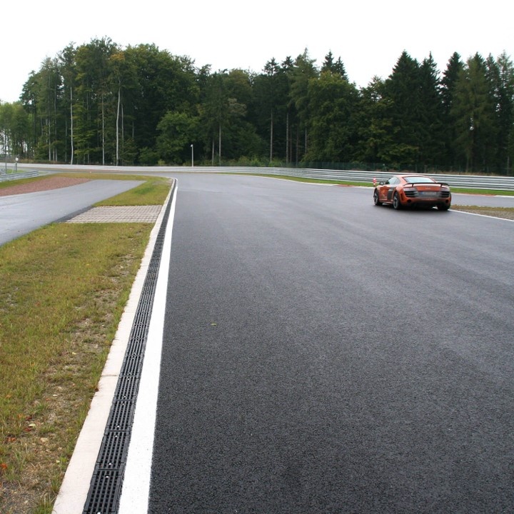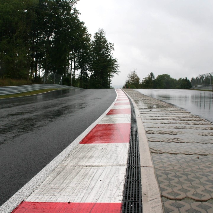 Our MAXI F1 drainage channel was installed in 2013 at the Bilster Berg Drive Resort in the Teutoburg Forest. The Drive Resort near Bad Driburg currently covers 82 hectares and was built on a former military site. In addition to the research and development opportunities for the automotive industry that the approximately 4.2 km long circuit offers, brand cups, driving and safety training and other events are held here.