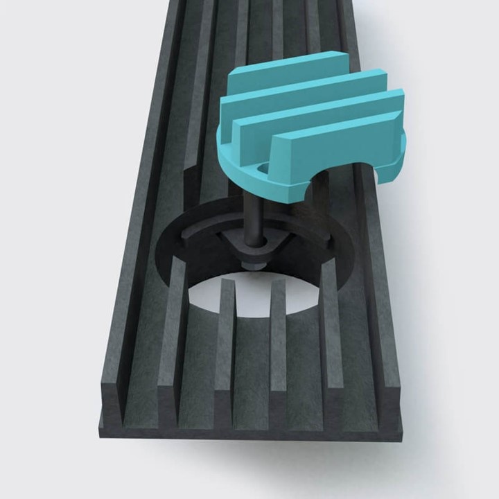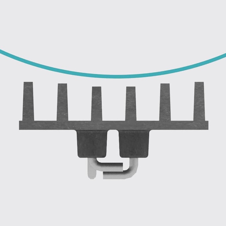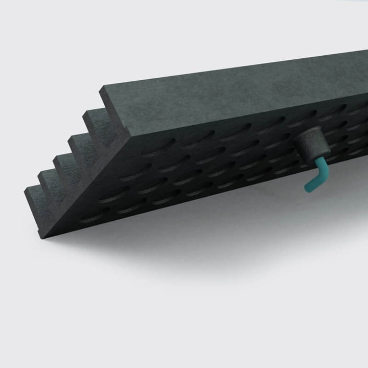 Concrete anchorsThe HYDROline has 3 concrete anchors that together with the ribbed underside create a very strong connection with the concrete. Due to this connection the lowered gutter is rattle-free in use. |