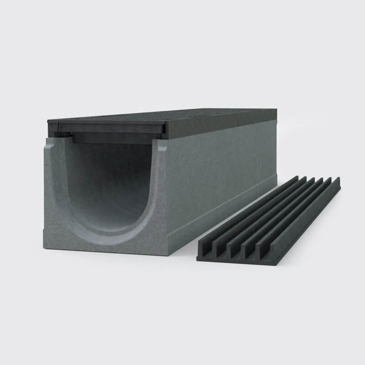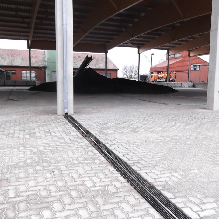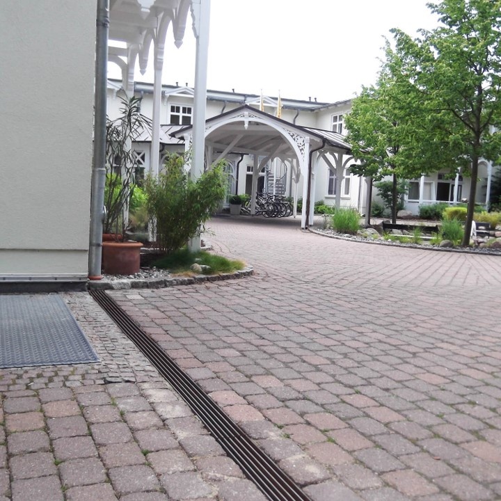 - The type of installation of the drainage channels depends on the installation locations with the associated traffic load and the planned hardening. The installation locations are divided into classes A 15 to F 900 in EN 1433. From class C, all cover grilles must be secured in a traffic-safe manner. The foundation of the drainage channels must be in accordance with the traffic load.
