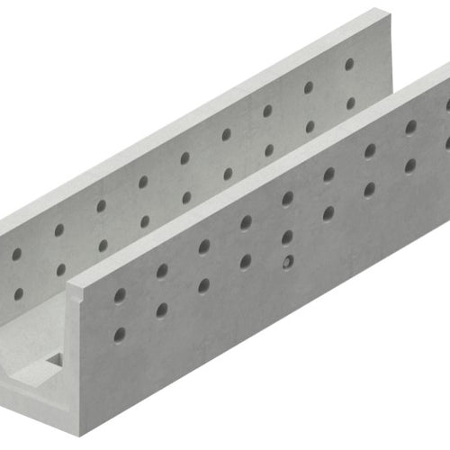 Self-supporting type I. Internal dimensions wxh=30x30cm (external dimensions wxh=46x44cm). Working length 3m. Load class A15 according to EN1433. Concrete edge profile. Reinforced self-compacting concrete C60/75. Environmental classes XD3-XF4-XC4-XA3. Durability W+R. Tongue/groove connection. Hoisting device ball head anchors type DEHA. Installation instructions according to manufacturer's specifications. Standardization according to EN1433. For recessed grid/lid. Industrial gray concrete, not architectural concrete. Color shades and air bubble formation possible. In an industrial environment and/or with very intensive use, we recommend the version with galvanized edge profile. Gutter must be wrapped in geotextile. Supplied excluding geotextile. Section current profile 900 cm2. Weight 700kg