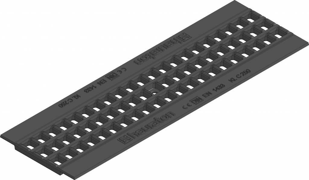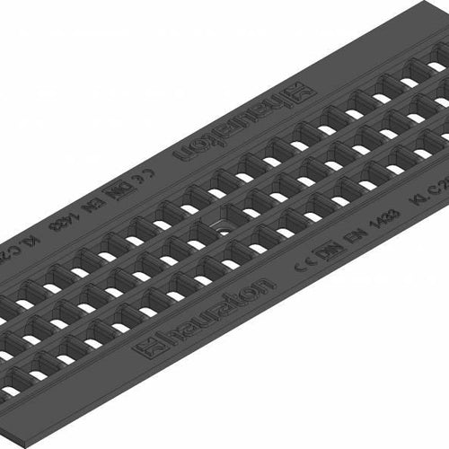 Breedte 158 mm uitwendig. Hoogte 14mm. Maaswijdte 15x25mm. Gewicht 3,2 kg. Conform DIN EN 1433, Voorzien van CE-markering