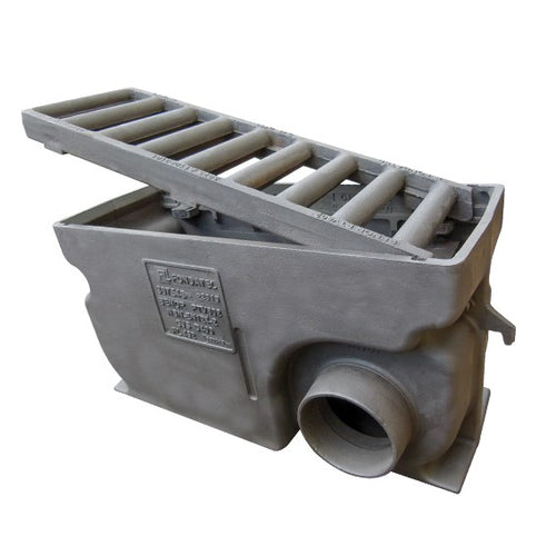 Belastingsklasse D, 400KN. Scharnierend rooster met keuze van openingszijde (omkeerbaar). Plat rooster, ronde staven. 2 haken voor eenvoudige plaatsing. Rooster steunt op 6 plaatsen op een EPDM dichting. Voorzien van een uitneembare stankafsluiter. Nodulair gietijzer GJS 500-7 volgens EN1563. Benor keur conform PTV 802. Doorlaatoppervlak 8100cm2. Gewicht 122kg