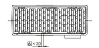 Belastingsklasse D, 400KN. Scharnierend rooster met keuze van openingszijde (omkeerbaar). Plat rooster, rechthoekige staven. 2 haken voor eenvoudige plaatsing. Rooster steunt op 6 plaatsen op een EPDM dichting. Voorzien van een uitneembare stankafsluiter. Nodulair gietijzer GJS 500-7 volgens EN1563. Benor keur conform PTV 802. Doorlaatoppervlak 6960cm2. Gewicht 122kg