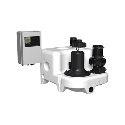 Fabrikaat Grundfos. Enkelpomps opvoerinstallatie voor het verpompen van afvalwater inclusief fecaliën. Gas- en geurdichte polyethyleen (PE) verzameltank (totaalvolume 93l). Voorzien van een Vortex waaier die geschikt is voor bestanddelen met een vrije doorlaat van 50mm. Voorzien van terugslagklep en niveausensor. Nominaal vermogen (P2) 1,5kW, 50Hz, Nominale spanning 3x400V, nominaal stroom 3,6A, 1430 omw/min. Aanloopmethode direct-on-line (DOL). IP68. Motorkabel 4m, stroomkabel 1,5m. Gewicht 89kg. Aansluitmogelijkheden; DN50, DN100 en DN150. Pers DN80. Besturingskast (IP54) LC231 met display en 2 potentiaalvrije contacten.