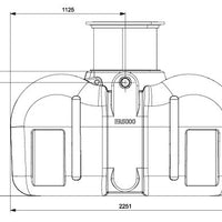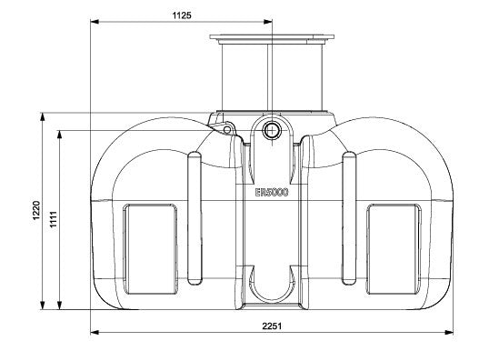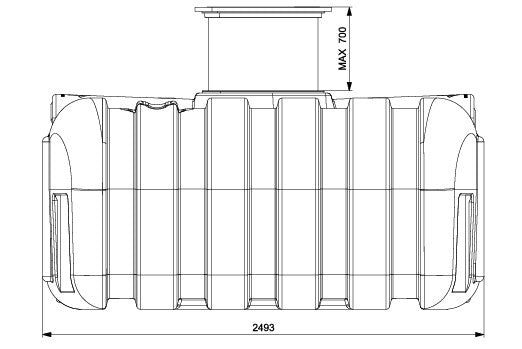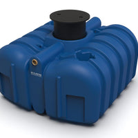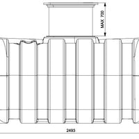 Materiaal PE (polyethyleen). De tank heeft een beperkte inbouwdiepte en wordt aanbevolen bij een hoge grondwaterstand en/of bij stenen die het graven bemoeilijken. Ze zijn eenvoudig te koppelen. Door zijn geribbelde constructie is er drukverlaging op de zijkanten van de tank en is makkelijker/sneller plaatsbaar dan een betonnen tank van gelijkwaardig volume. Standaard uitgerust met een extra aansluitpunt voor een zuigslang. Telescopische schacht tot 70 cm inclusief deksel (verkeersbelasting tot 200kg), DIN 1989 met rubberen afdichting, mangat 600mm. Waterdichte overgang van tank naar schacht! Afmeting lxbxh=247x225x120cm. In- en uitgang 110mm. Gewicht 200kg. Geschikt voor ondergrondse plaatsing.