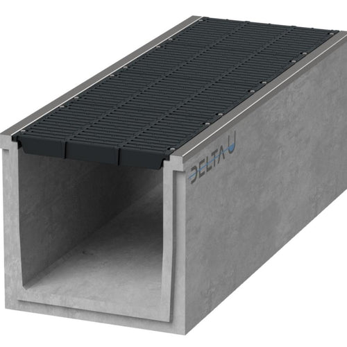 Zelfdragend type I. Inwendige afmeting bxh=60x30cm (uitwendige afmeting bxh=76x40cm). Werkende lengte 1m. Belastingsklasse D400 conform EN1433. Gegalvaniseerd stalen randprofiel. Gewapend zelfverdichtend beton C60/75. Omgevingsklassen XD3-XF4-XC4-XA3. Duurzaamheid W+R. Verbinding tand/groef. Hijsvoorziening kogelkopankers type DEHA. Plaatsingsvoorschrift volgens opgave producent. Normering conform EN1433. T.b.v. inliggend rooster. Gewicht 315kg. Industrieel grijs beton, geen architectonisch beton. Kleurschakeringen en luchtbelvorming mogelijk.