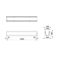 Type M volgens NEN EN 1433. Hoogwaardig vezelversterkt beton C35/45. Met 4mm verzinktstalen randbescherming. Inwendige breedte 100mm. Uitwendige afmetingen lxbxh=1000x158/164x160mm. Kiwa certificaat conform BRL 5070. Voorzien van CE-markering. Gewicht 30kg.