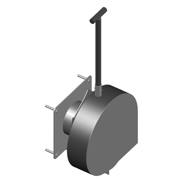 Uitneembaar wervelventiel type KPS is voorzien van koppelstuk, montageplaat 292x292mm en trekstang. Koppelstuk/schuifstuk 108mm. Stanglengte 150cm. Te monteren op een vlakke wand. (Ronde put is mogelijk, diameter put dient opgegeven te worden). Putafmering minimaal 400x400mm inwendig